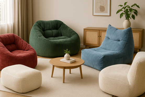 Ivoria – Pouf XXL beige en velours côtelé (grosse côte)