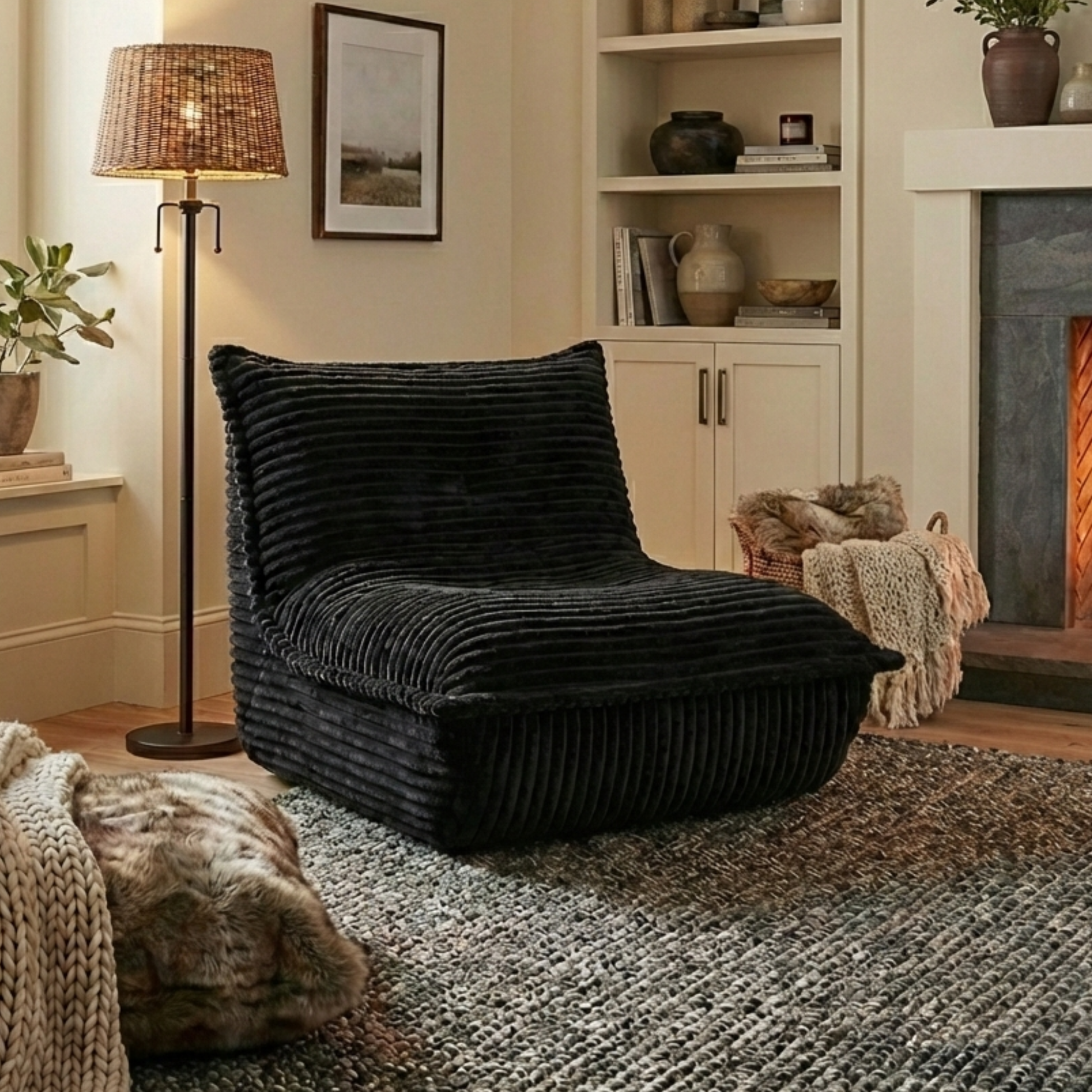 Calys – Lounge pouf “caterpillar” in corduroy, comfortable and cozy Scandinavian seat