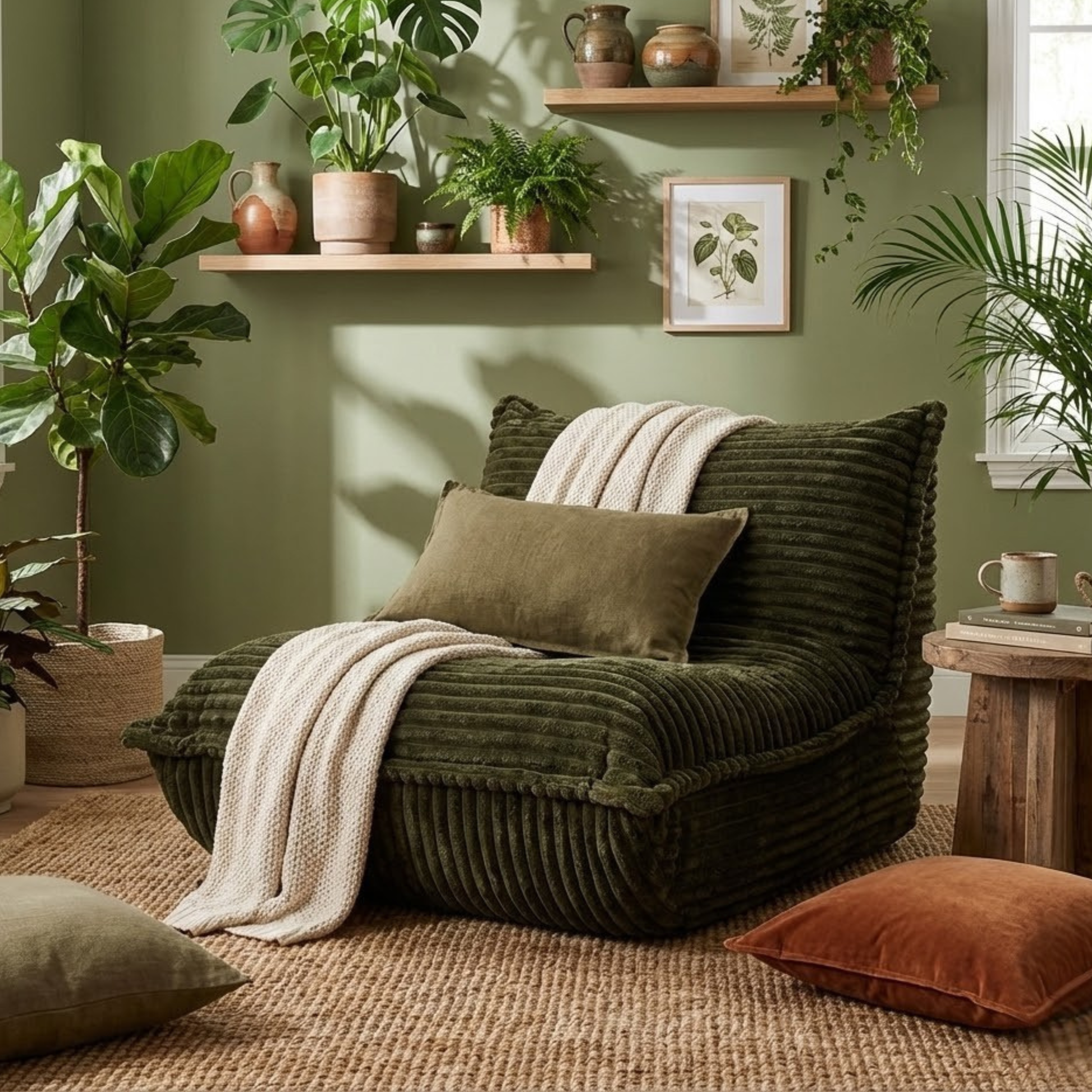 Pensé pour la détente absolue, Calys offre une assise moelleuse grâce à son garnissage en mousse, idéale pour s’installer confortablement en position assise ou s’allonger pleinement. Sa forme enveloppante invite naturellement au relâchement, que ce soit pour lire, se reposer ou même dormir ponctuellement. Le velours côtelé doux au toucher renforce la sensation de cocooning et de confort durable.