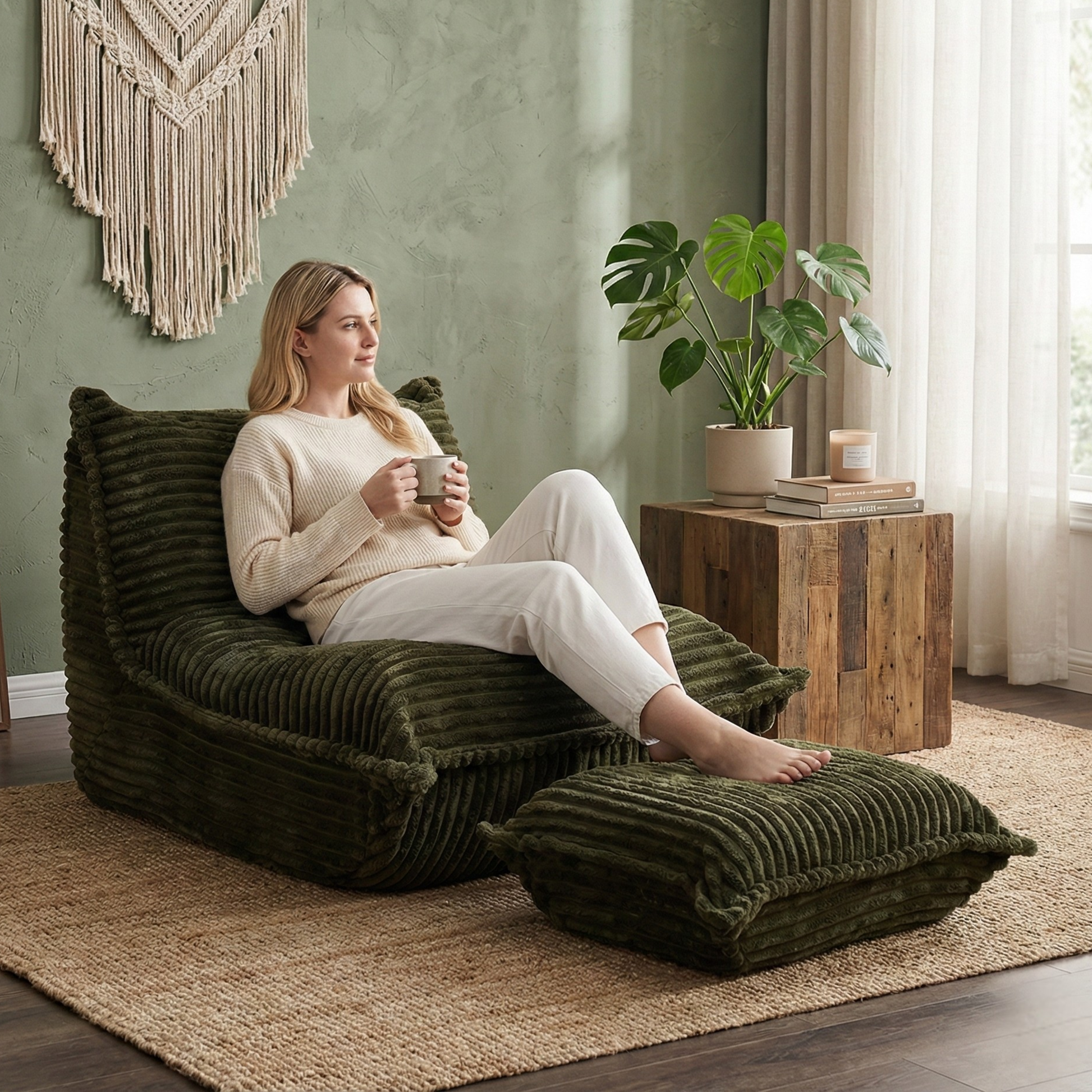 Calys – Pouf lounge “caterpillar” en velours côtelé, assise scandinave confortable et enveloppante
