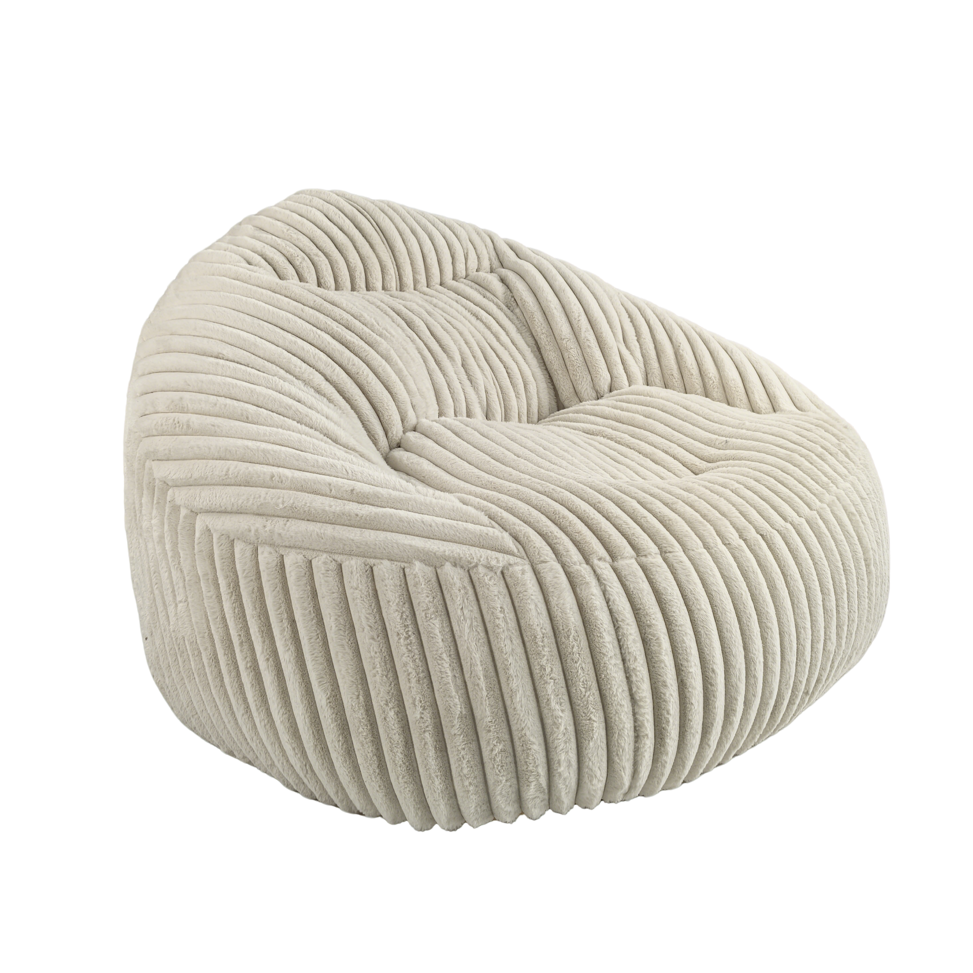 Ivoria – Pouf XXL beige en velours côtelé (grosse côte)