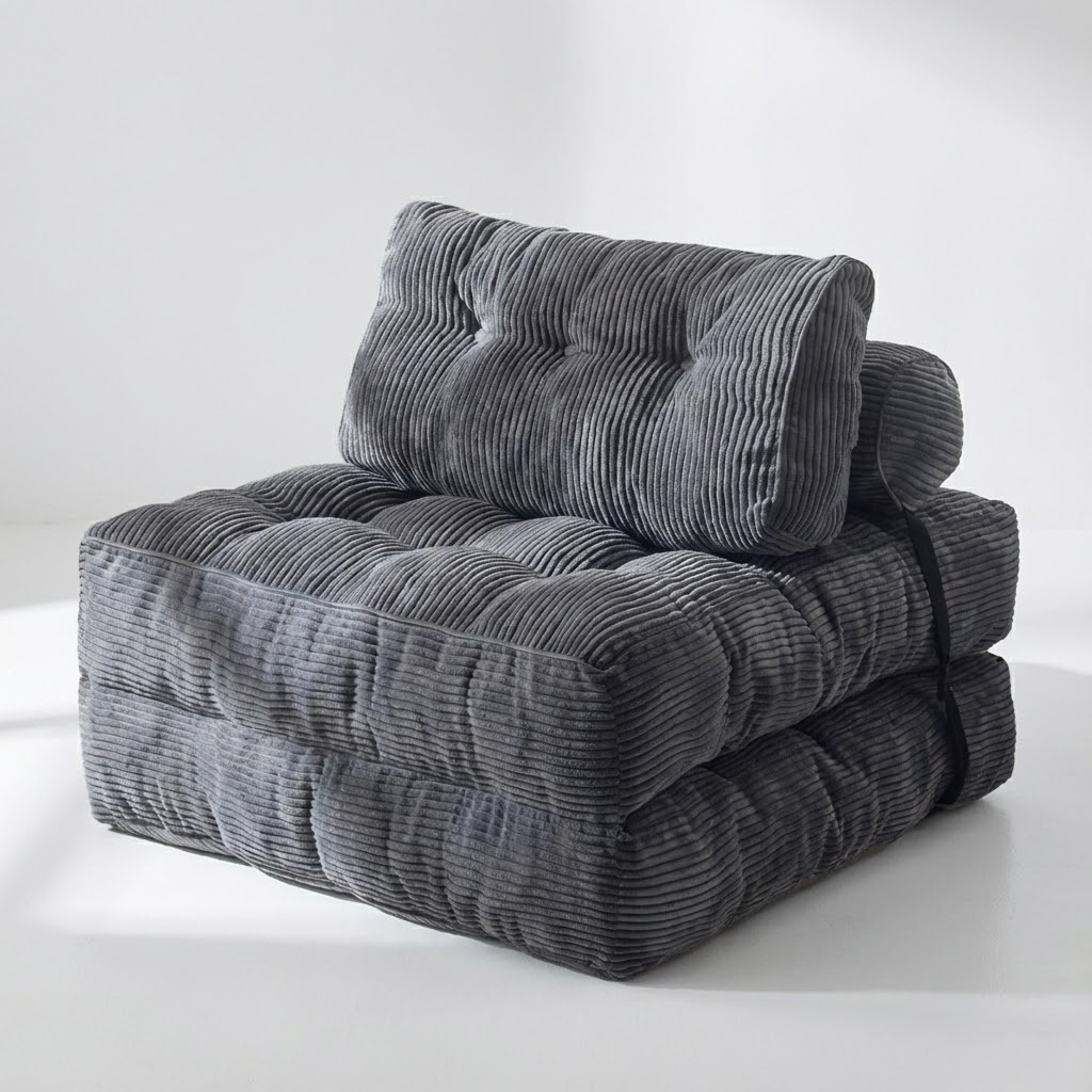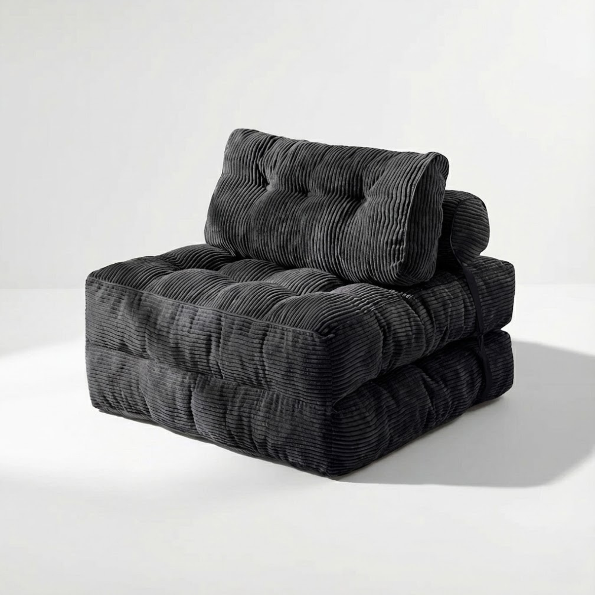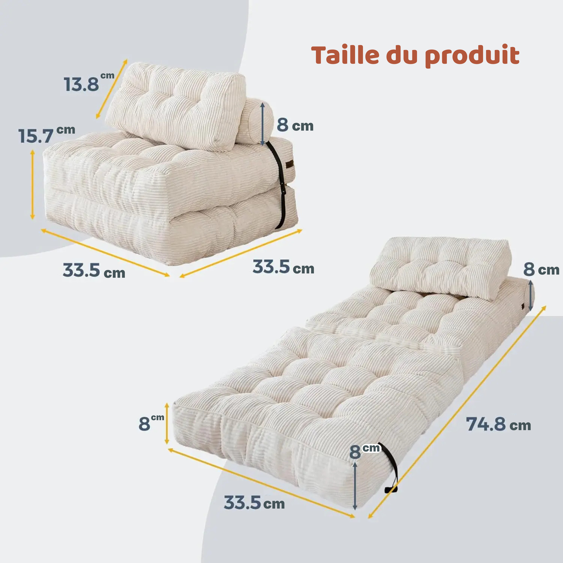 Nèven – Pouf convertible pliable en velours côtelé, canapé-lit compact et modulable