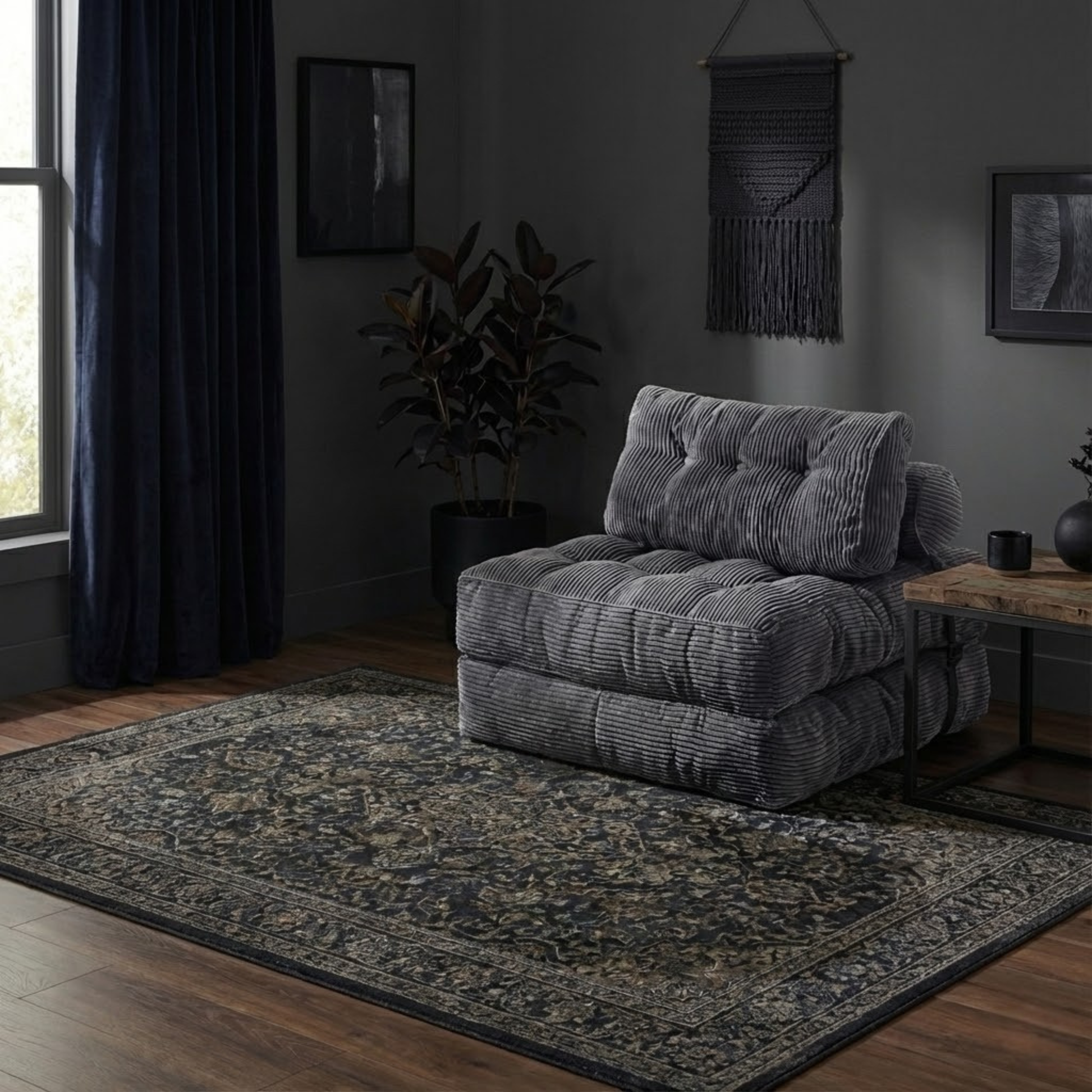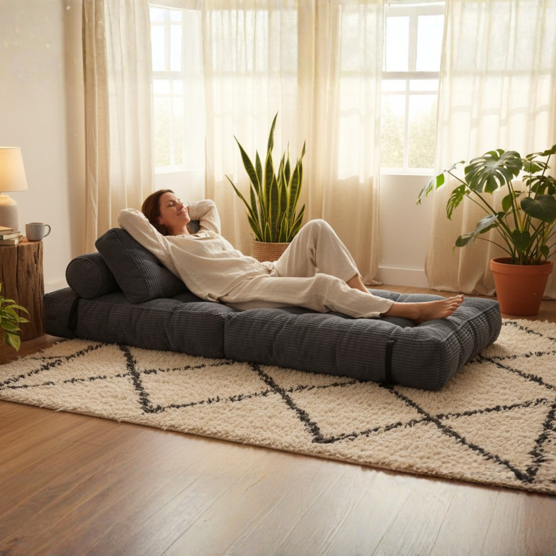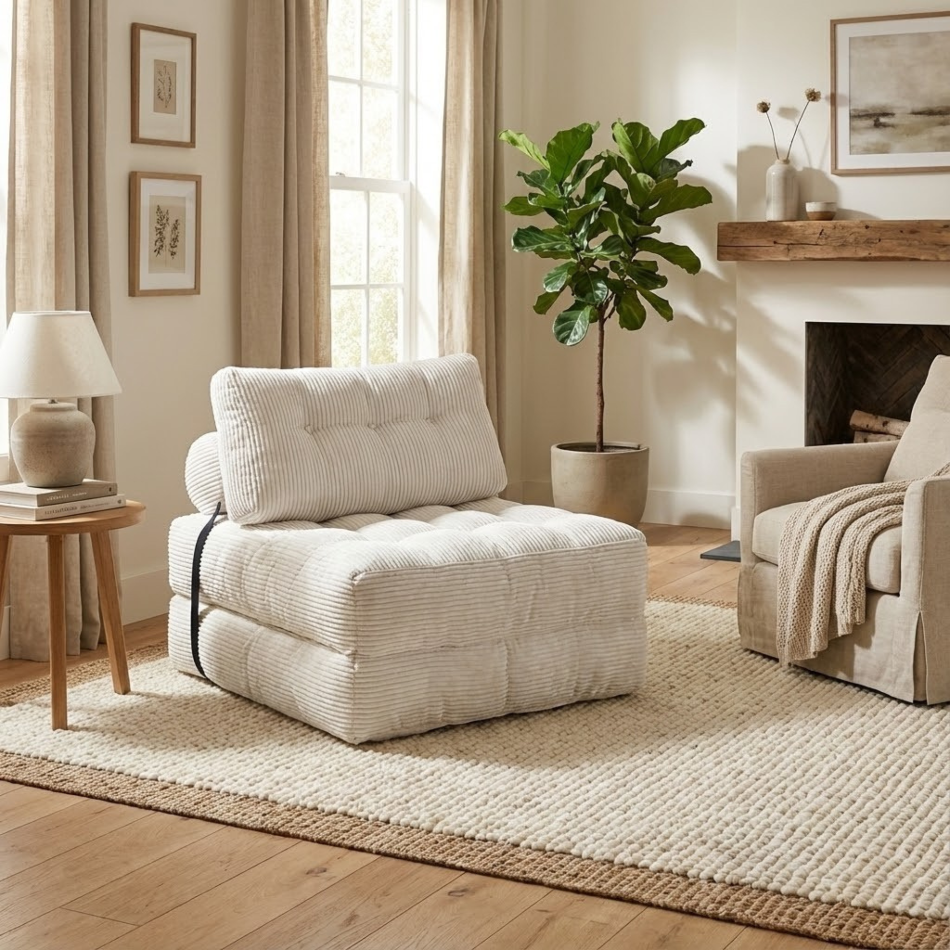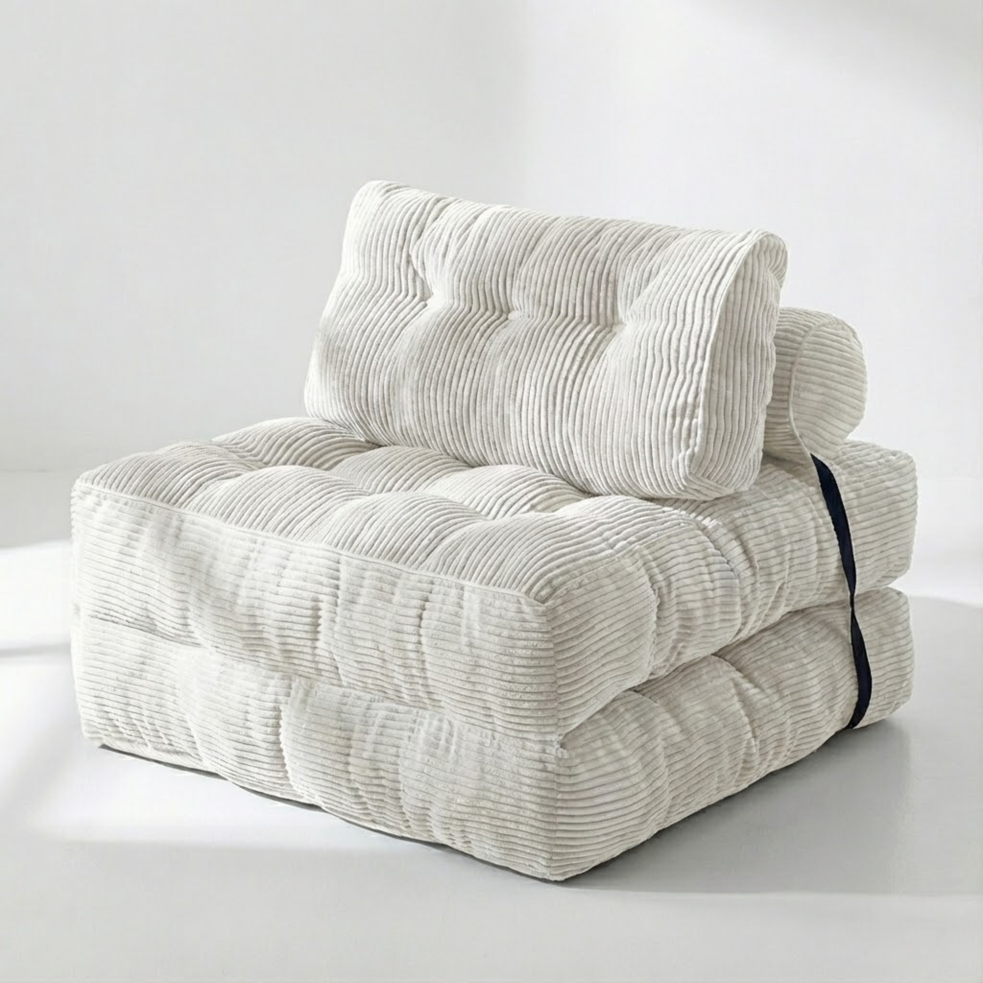 Nèven – Pouf convertible pliable en velours côtelé, canapé-lit compact et modulable